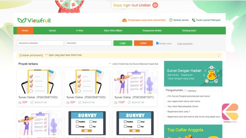 Kami bisa menjadi pengunjung atau responden yang setiap mengisi survey kamu bisa mendapatkan poin. Semakin banyak poin yang kamu kumpulkan, semakin banyak juga penghasilan yang akan kamu dapatkan.
