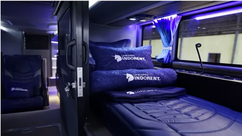 Untuk bagian eksteriornya unit milik Harapan Jaya ini menggunakan livery khasnya, yaitu putih dengan balutan warna orange di bawahnya. Namun gambar kuda ditempatkan pada kaca samping, yang ukurannya besar banget.