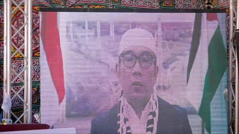 Perwakilan Kementerian Wakaf dan Agama Palestina, Abdul Hadi Saeed Al-Agha, mengucapkan terima kasih kepada Gubernur Jabar dan bangsa Indonesia atas pembangunan Masjid Syeikh Ajlin.