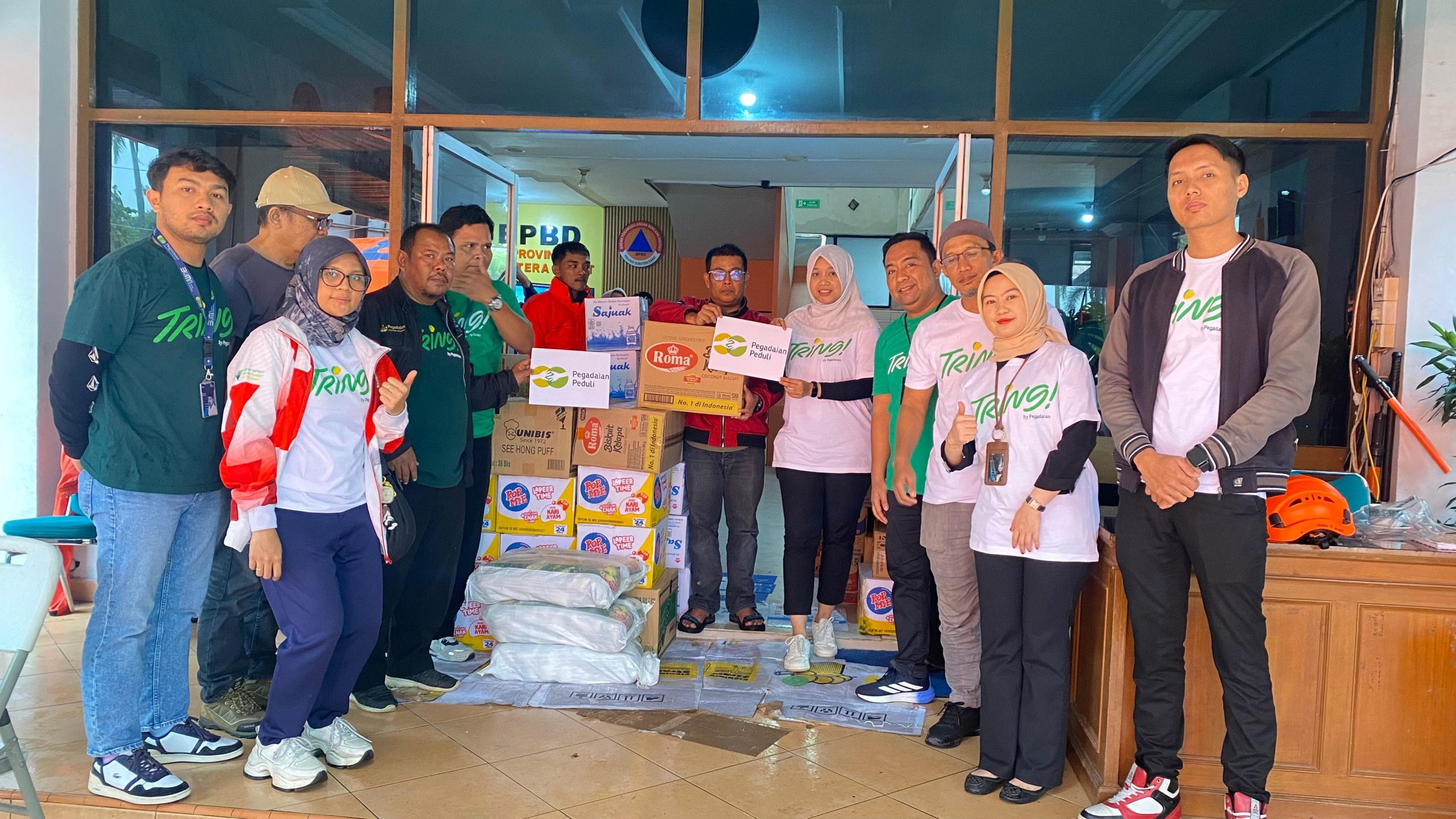 Penyerahan bantuan tahap pertama dilakukan oleh Manajer Bisnis Pegadaian Cabang Terandam, Eka Isra Wahyuli, bersama tim Area Padang di kantor BPBD Sumbar. Bantuan diterima secara resmi oleh Sekretaris BPBD Provinsi Sumatera Barat, Armizoprades, ST., MT.