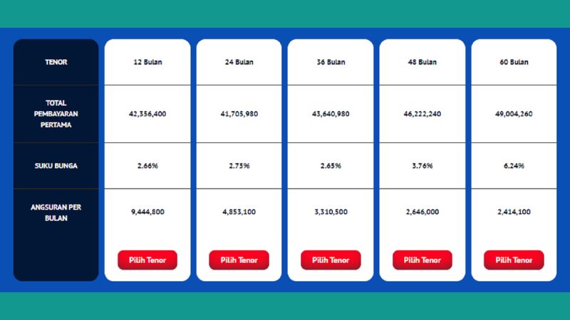 Tabel perbandingan ini dapat dijadikan referensi sebelum Anda memutuskan untuk membeli mobil. Dengan demikian, Anda dapat memilih skema kredit yang paling menguntungkan dan sesuai dengan kondisi finansial Anda.